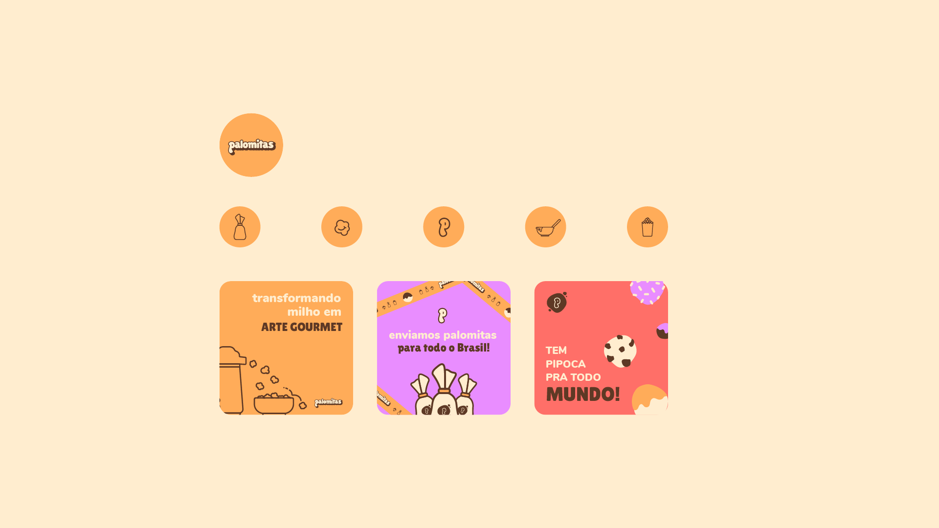 A Palomitas é uma pequena empresa de pipocas gourmet que oferece uma vasta gama de sabores para seus clientes, sempre recheada de alegria e felicidade. Palomitas oferece mais do que pipocas, ela entrega pacotinhos que carregam amor, alegria e muito sabor.